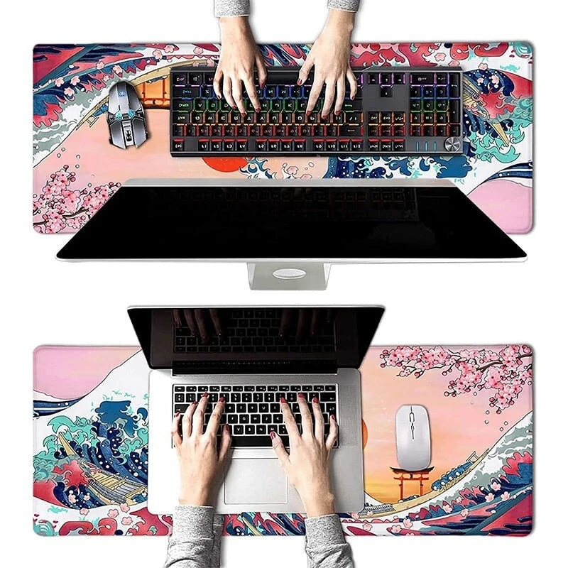 Feeling bored or tired of your desk? Switch it up with this long mouse pad and feel like you are working or playing in a completely different environment. More than double the size of your average mouse pad, these amazing detailed artistic mouse pads would make the perfect gift for anyone who loves Japanese Culture. Featuring the Great Wave of Kanagawa art with a sunset background and vibrant colors. A 2mm thick mat means it’s better quality.