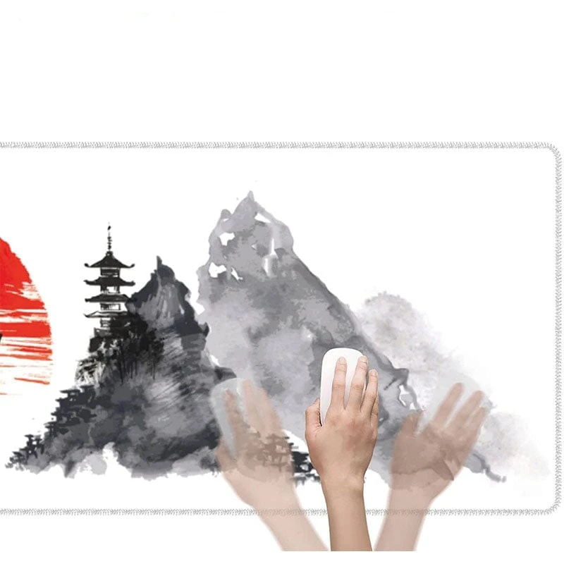 Turn your desk into a Japanese-themed haven and enjoy sitting at your desk featuring a grayscale Samurai with a beautiful scene of a pagoda on a mountain peak with a blood-red sunset.Â