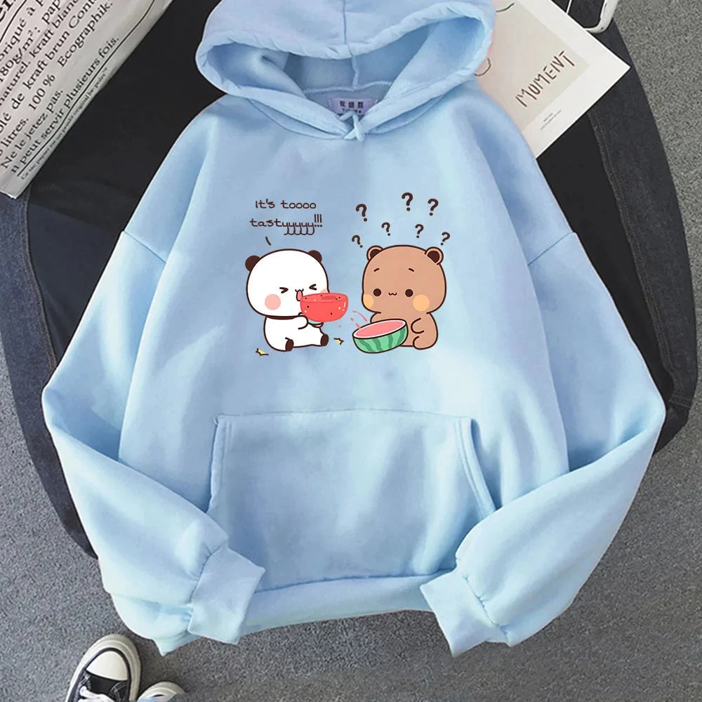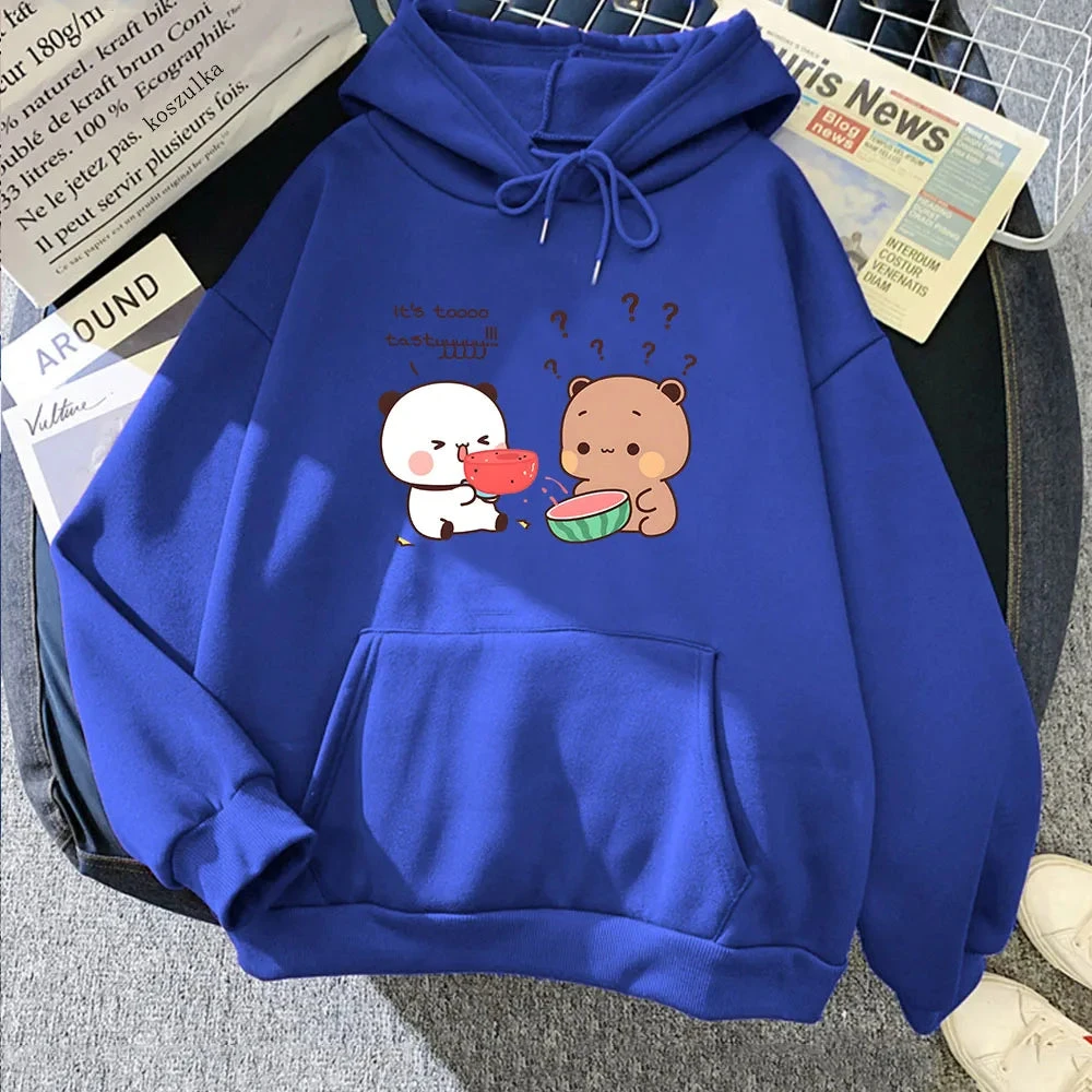 Perfect as a gift or a treat to yourself, this part-cotton hoodie features two bears sharing a refreshing watermelon. This hoodie is going to look great with your favorite pair of jeans or sweatpants.