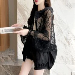 Add this to your wardrobe featuring a half-laced hooded jacket that will sit lightly on your body. Enjoy wearing this long-sleeved jacket when you’re out with friends! Pair it effortlessly with jeans or shorts and a cute top. Be prepared to stand out with a jacket like no other!