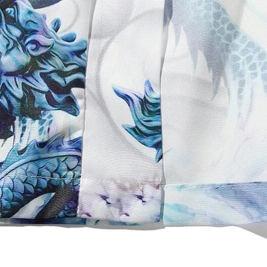 This kimono features a majestic dragon design in vibrant blue, symbolizing strength, courage and wisdom. The fabric is soft and comfortable, yet durable and resistant to wrinkles.