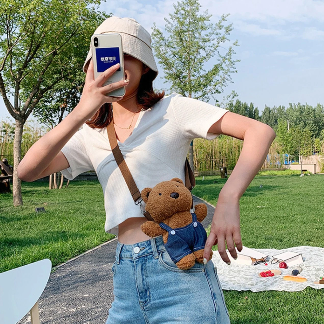 Brown bear bags come in one size each, measuring about 22CM / 8.6IN in height. Made from high quality super soft fillings with enough space to fit all of your essentials. There is a single crossbody strap made easily adjustable and the zip easy to open and close. They are perfectly-sized for every occasion, and sure to become a much-loved companion for all ages.