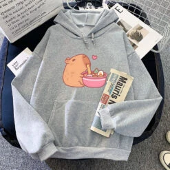 Step into the spotlight with a touch of style and revel in the delightful warmth provided by this unisex hoodie featuring a capybara slurping on a warm bowl of ramen.