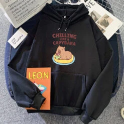 Step into the spotlight with a touch of style and revel in the delightful warmth provided by this unisex hoodie featuring a cute capybara chilling with a refreshing drink.
