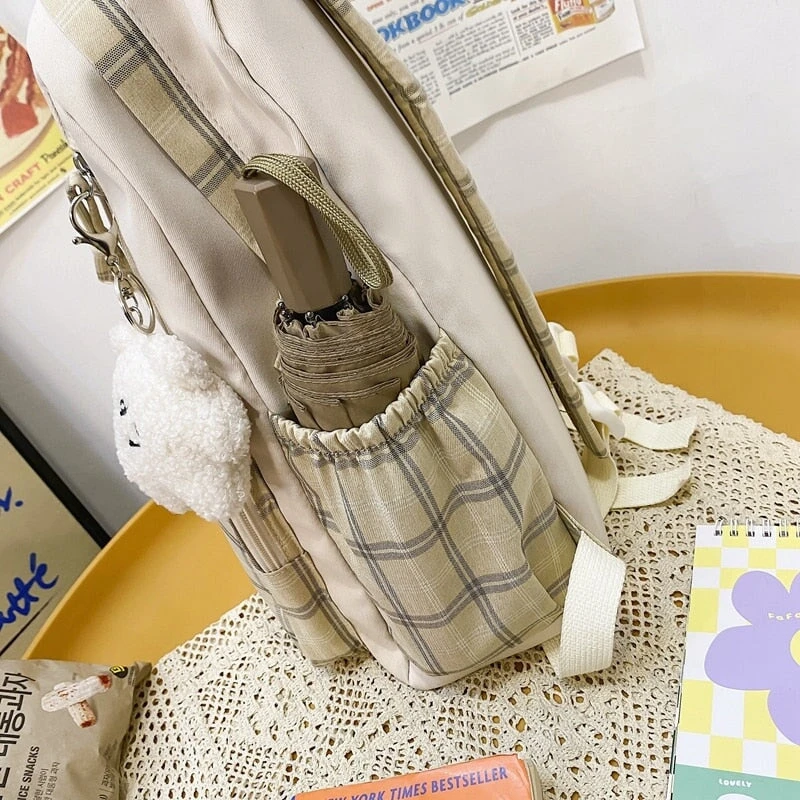 This functional backpack features a plaid, two-tone pastel pattern, along with several pockets both inside and outside, allowing you to keep your bottle away from your laptop, tablet, notes, books and more. This bag offers ample internal storage space and is ideal for storing all your essentials.