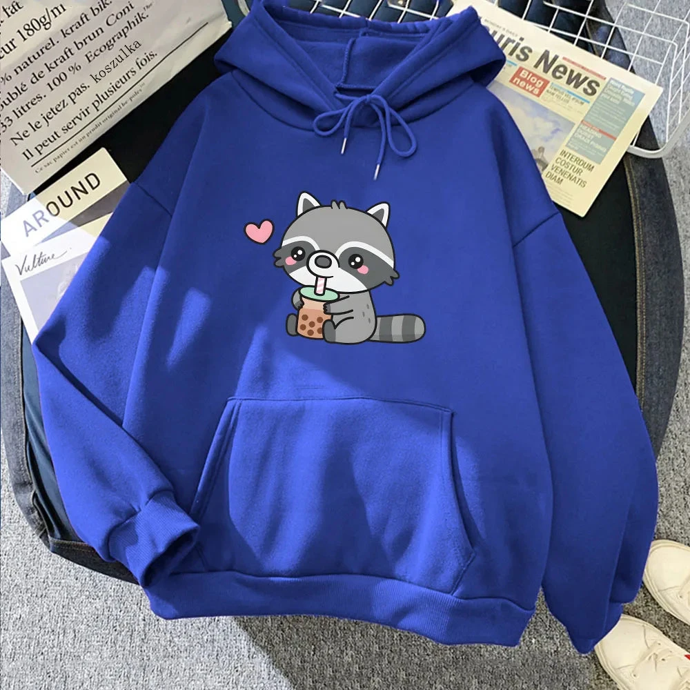 Step into the spotlight with a touch of style and revel in the delightful warmth provided by this unisex hoodie featuring a cute raccoon drinking its favourite bubble milk tea drink.
