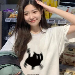 Then this cute tee is a must-have addition to your everyday essentials featuring a shocked black cat printed on the front. With a classic fit, this high-quality tee is great to add some fun to your wardrobe. Made from a blend of cotton and polyester that feels soft on the skin so you can wear it all day long. Wear it out with your friends on the weekend or on holiday with your loved ones.