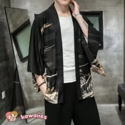The kimono features a vibrant pattern of golden leaves, branches and flowers that contrast with the dark background. The kimono also has a misty torii print on the back, which is a traditional Japanese Torii means passing through the torii, you are entering the realm of the gods. The kimono is a perfect choice for anyone who wants to express their appreciation for the beauty and culture of Japan. The kimono is suitable for various occasions, such as festivals, ceremonies, parties or casual wear.