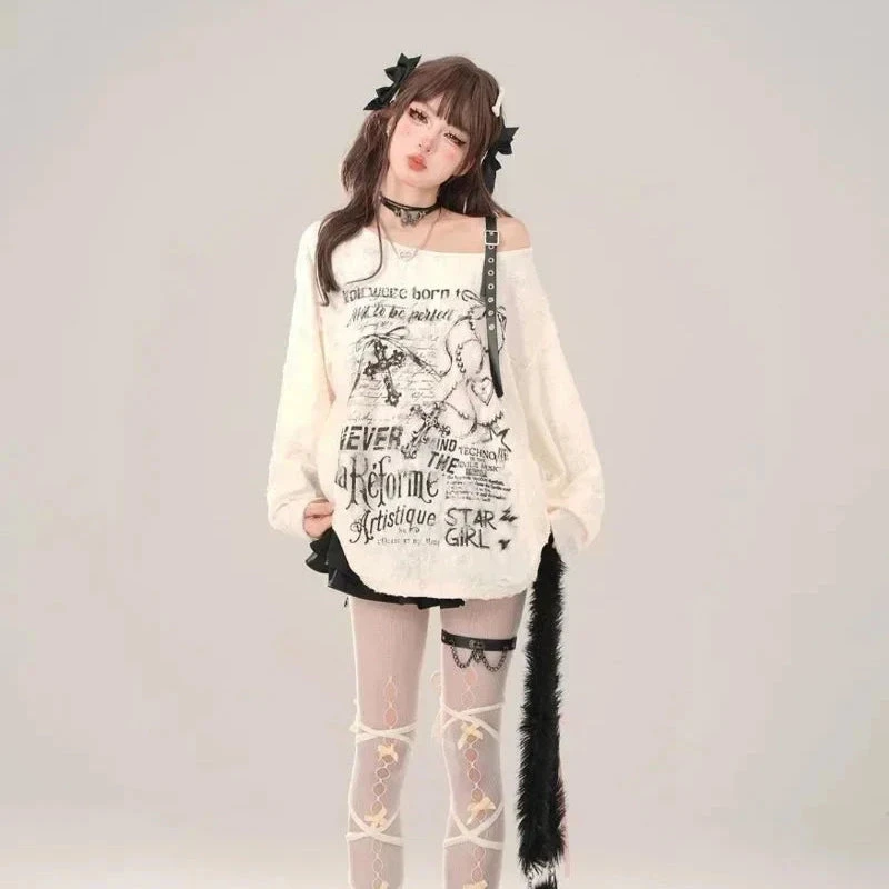 Born to stand out, never to blend in. This Off-Shoulder Graphic long-sleeve is your new weekend top, slouchy, statement-making, and oozing chaotic soft-girl energy.