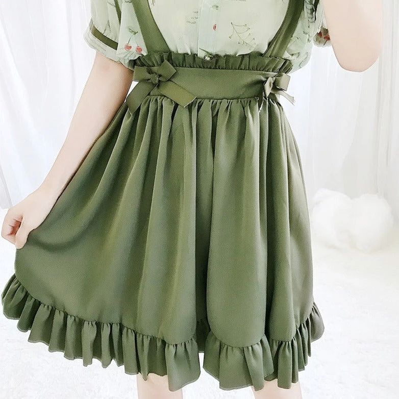 Look cute and stand out from the crowd in this stunning lolita green dress perfect for Spring and Summer. Featuring a soft pleated design with straps and bows on either side, style this up with boots or heels and our green shirt if you decide to purchase the bundle.
