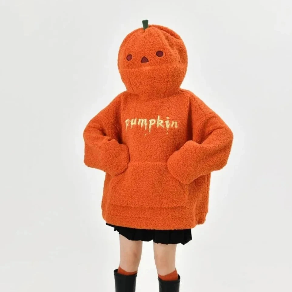 This cozy, fleece-lined hoodie features a vibrant pumpkin hood, complete with a playful jack-o’-lantern face that adds festive fun to your wardrobe. The soft, durable fabric keeps you warm on chilly autumn nights, making it perfect for trick-or-treating or Halloween parties. With a comfy hood and easy zip-up closure, this jacket is both stylish and practical for all your Halloween adventures. Embrace the season with this must-have piece!