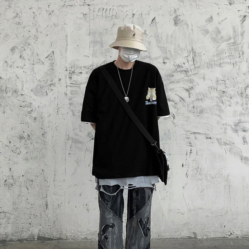 Then this short-sleeve oversized tee is a must-have for you! Features a cool cat slurping on noodles with Japanese letters printed onto the back with a small cat illustration on the front. With a classic oversized look, this light, thin tee is going to make you stand out from the crowd.