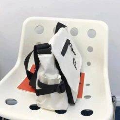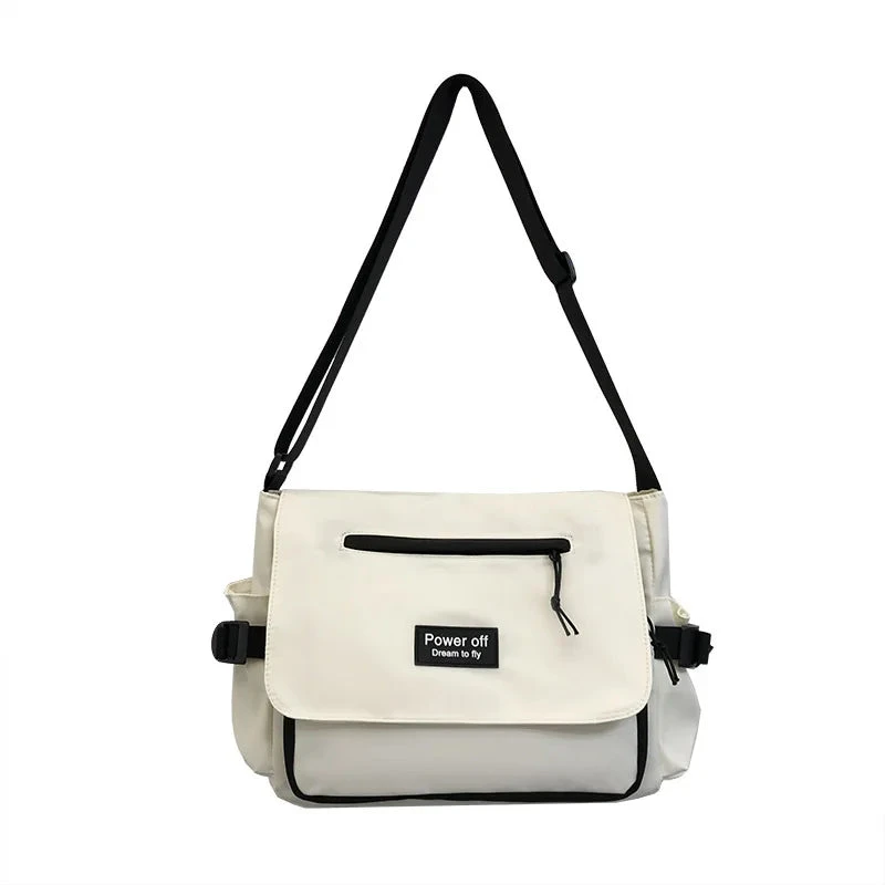 This simplistic but functional crossbody bag features several different large compartments, and many interior and exterior pockets. Wear this bag on your side with a thick black adjustable strap. Made from high-quality waterproof materials with enough space to fit all of your essentials. Choose to have a Soot Ball plush pendant.Â