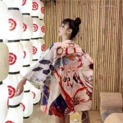 Aime will take you on a journey back to ancient times where you will be able to experience what it was like to live in Japan during the Heian era. With a classic oversized look, this light, thin kimono will feel silky soft on your skin.