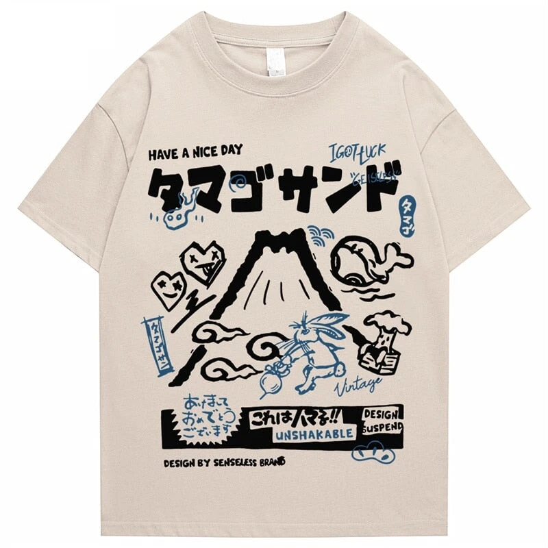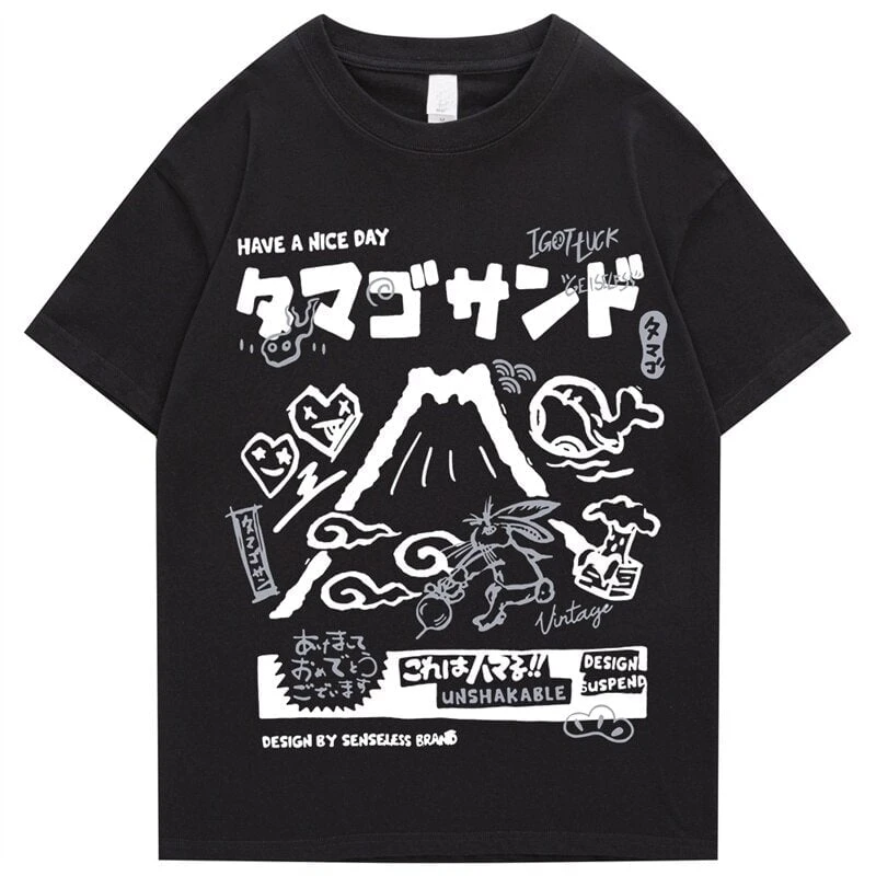 Crafted from premium cotton, this stylish Japanese-themed tee boasts an eye-catching illustration of Mount Fuji on the front. Perfect for adding a touch of fun to your wardrobe, each tee is sold separately.
