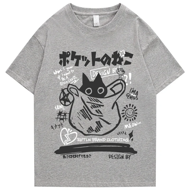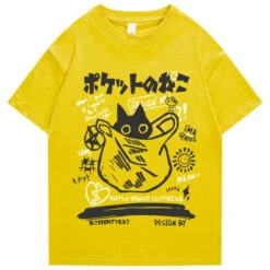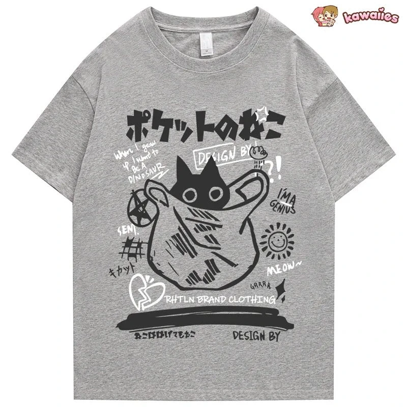 Are you in search of a comfortable tee that never fails to bring a smile to your face when you’re searching for a tee to wear? Look no further than this Cat-themed Tee! This cute top features an adventurous black cat following you around in a tote bag with kanji text and fun illustrations. Made from 100% cotton, these tees offer a soft, breathable, and durable feel. The round neck, short sleeves, and regular fit make it flattering for any body type.