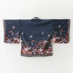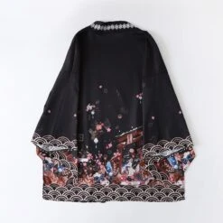 Slip into an affordable kimono that feels soft on the skin with a touch of Japanese style. Choose between two designs featuring a black and dark green canvas with shrines and cherry blossoms with a unique pattern around the collar. A classic loose fit that feels light and silky soft all day long.Â