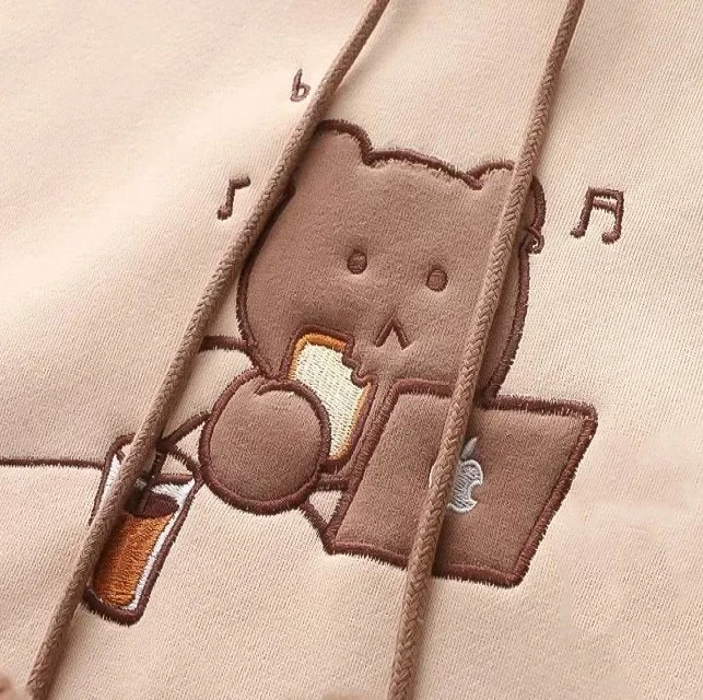 If you are looking for a bear-y cute hoodie, our Bear Hoodies are the answer. These fashionable, yet comfortable two-tone hoodies feature an embroidered cute bear working on their laptop, a bear-themed hood and fluffy pom pom tassels. Made from pure cotton fleece material that will keep you warm even in the evenings.