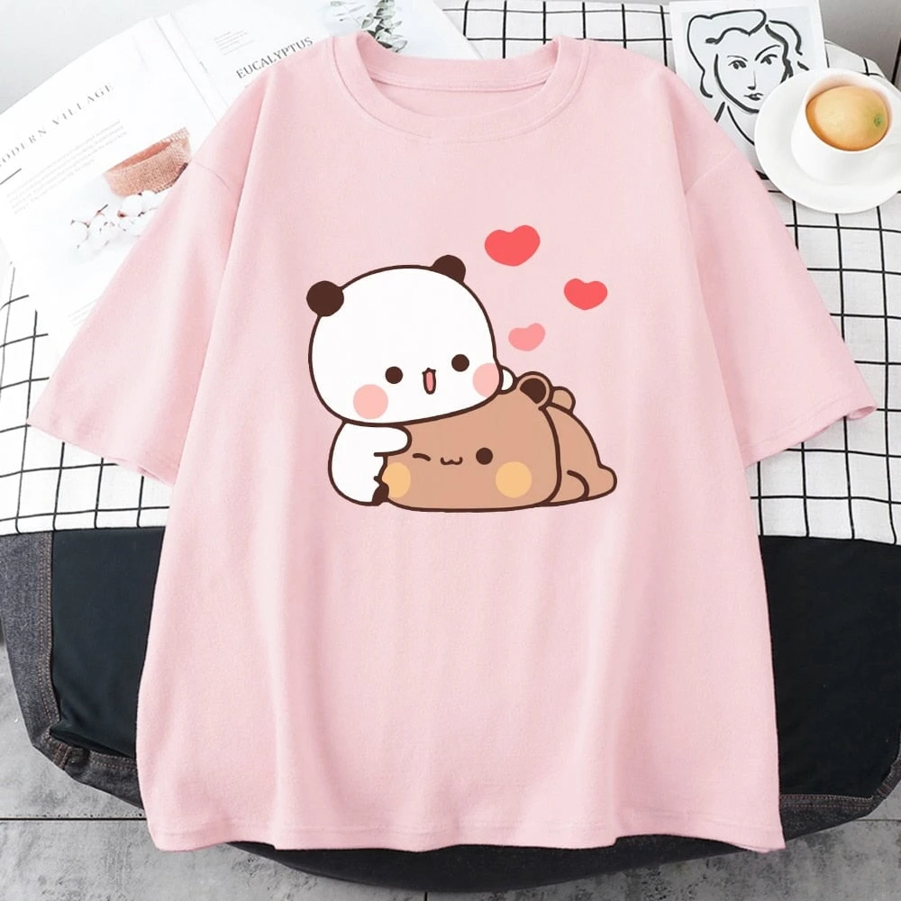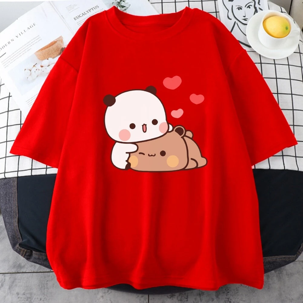 Made with soft cotton, this tee will feel gentle against your skin. Whether you’re a bear enthusiast or a fan of pandas – anyone can wear it with absolute delight. Pair it effortlessly with jeans, shorts, or your favorite skirt, and watch as the smiles follow you wherever you go. This tee isn’t just a piece of clothing; it’s a statement of your love for all things cute, and it’s bound to spark conversations and brighten up anyone’s day.