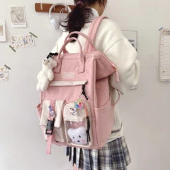 Keep your stuff protected with this waterproof backpack that can also be used as a handbag! This bag has several different large compartments, secret pockets, straps, handles, and multiple exterior pockets on the front and sides. The front of the bag also features a cute see-through pocket where you can keep things safe or show off something cute! Now you can keep your keychains safe with you.