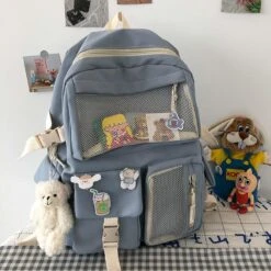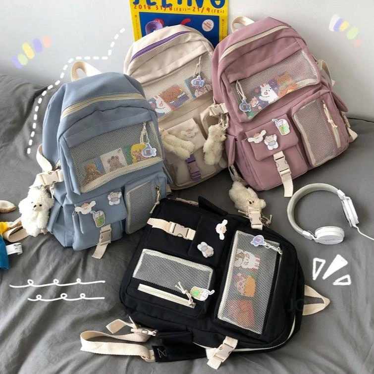 This fun and functional backpack features several different large compartments, pockets inside and five secure exterior pockets. The front of the bag also features a cute see-through pocket where you can keep things safe of show off your decoration skills! Made from high-quality waterproof materials with enough space to fit all of your studying neccessities.