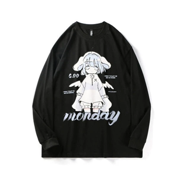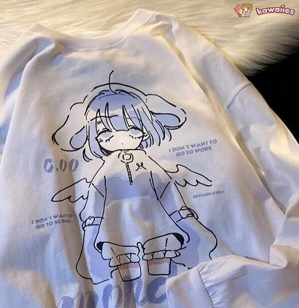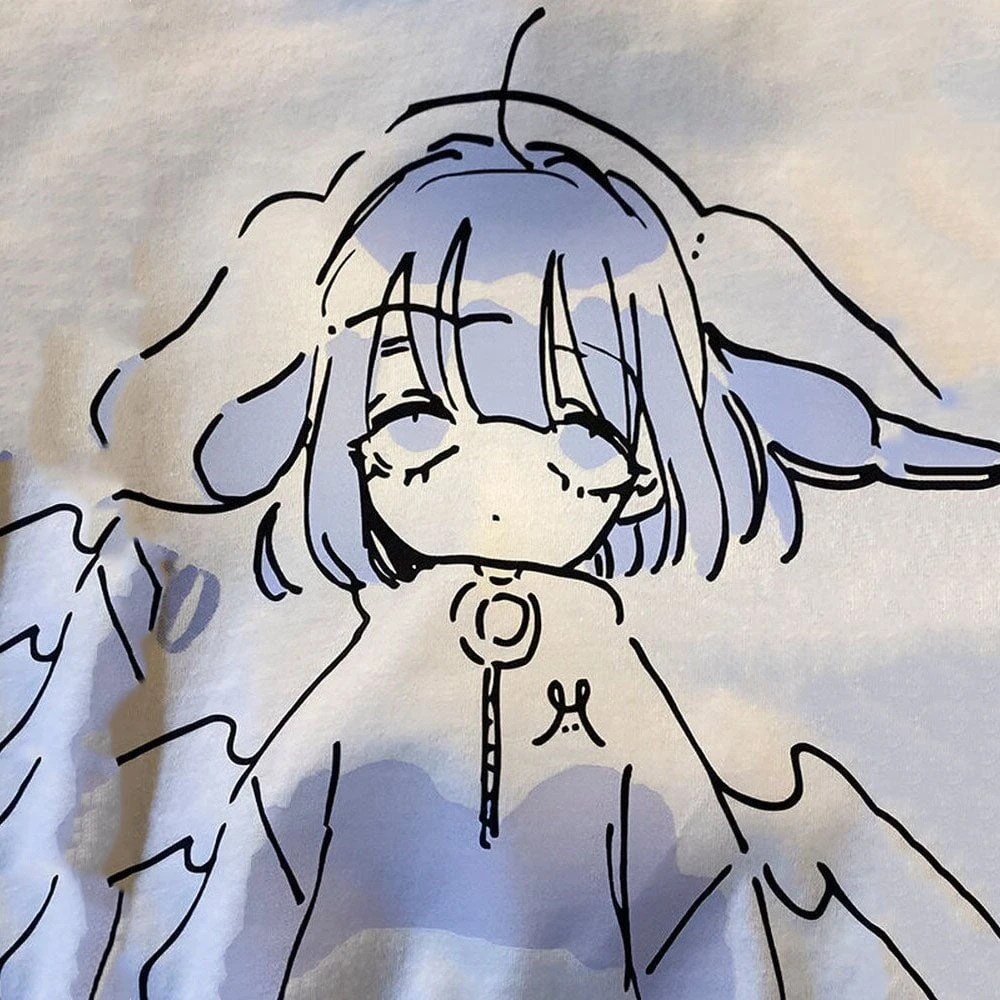 Feel like a cute angel in this kawaii sweatshirt featuring a cute chibi girl in a bunny outfit with wings printed on the front! Made from a blend of polyester and cotton with a loose, lightweight fit. Available in both white and black! A heavenly addition to your wardrobe. The print may look different in person due to screen color differences.
