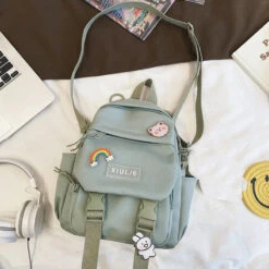 Your search for the perfect bag is over. This small backpack is roomy, durable, lightweight, and can be worn on your back or on your side. It features several different pockets inside and outside, buckle straps, and cute accessories. The front of the bag also features a pocket where you can keep things safe with two buckles and a zipper.