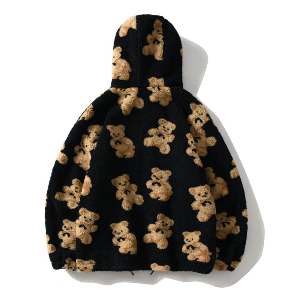 Stay warm and fashionable all day long with our soft and fluffy bear-themed jacket! Show off your individual style with two front pockets, a drop-shoulder fit, and a fur-lined hood adorned with a bear design! This zip-up hooded jacket is comfy, chic, and perfect for indoor and outdoor wear. Choose from Black, Brown, and Cream with five sizes available.
