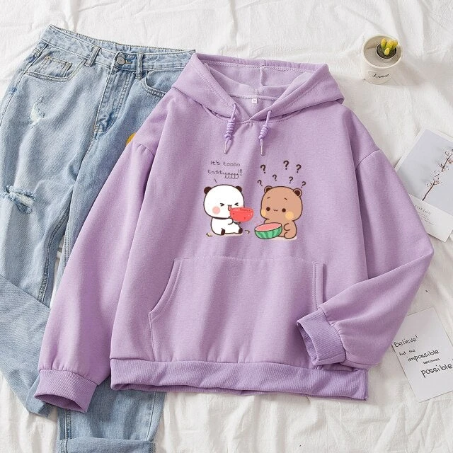 Perfect as a gift or a treat to yourself, this part-cotton hoodie features two bears sharing a refreshing watermelon. This hoodie is going to look great with your favorite pair of jeans or sweatpants.