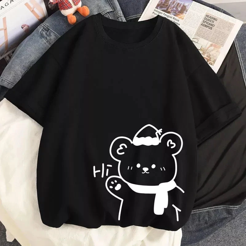 A simple yet cute addition to your wardrobe! Featuring a cute white bear waving on the front making it a must-have for any bear lover. Whether you’re hanging out with friends or just relaxing, this tee promises both comfort and style.