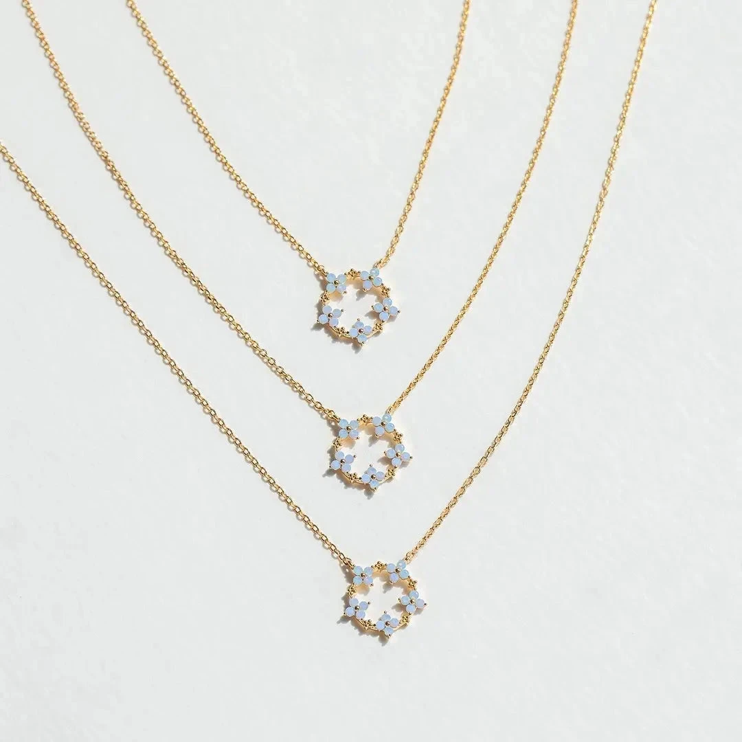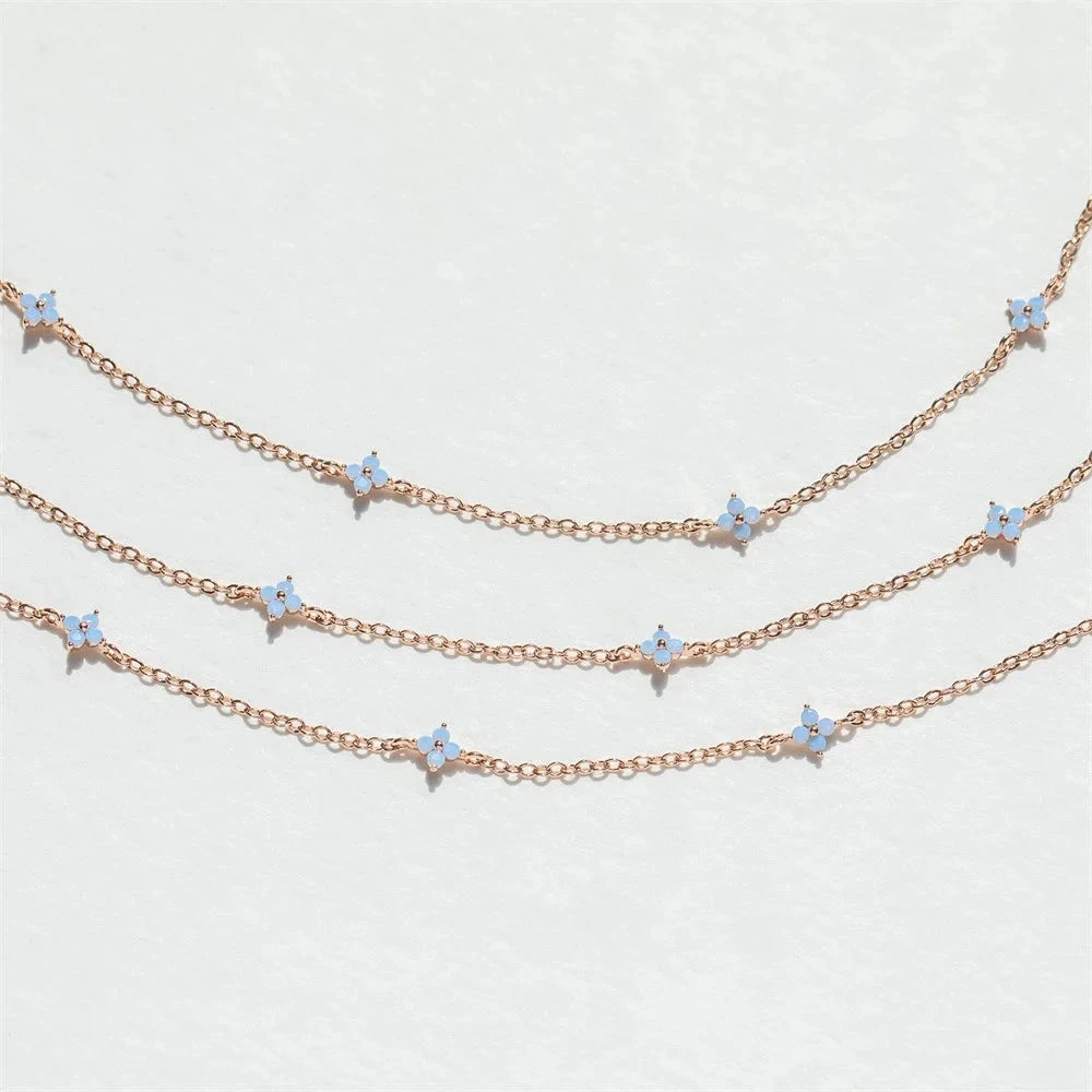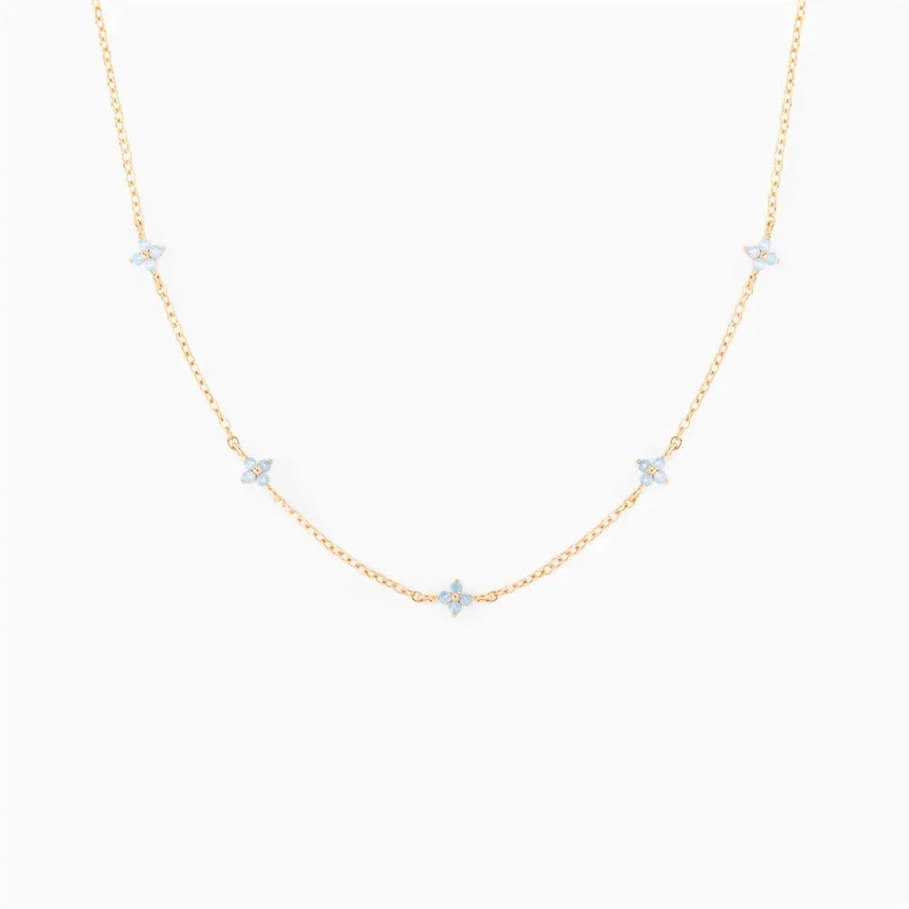 A delicate necklace featuring petite blue flowers crafted from high-quality materials and finished with luxurious 18K gold plating. Choose between two styles or stack them both for a delicate spring look.