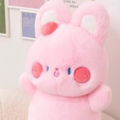 These bunny plushies are here to absorb the negative energy and add some extra fun and pink to your life. Buttons the kawaii bunny plushie is ready to find their new best friend. These fluffy bunnies are waiting for you to bring them home and give them a big carrot and a hug. Featuring fluffy faux fur, bright pink cheeks, blue eyes, and a strawberry plush on Button’s head.
