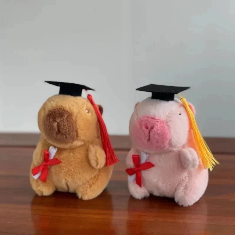 Our super adorable Capybara plushies are now available with a graduation cap and scroll, perfect for those graduation ceremonies! They will love receiving this plushie on their special day — a unique gift like no other.