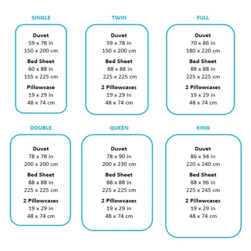 🌸 International duvet size: Single, Twin, Full, Double Queen & King