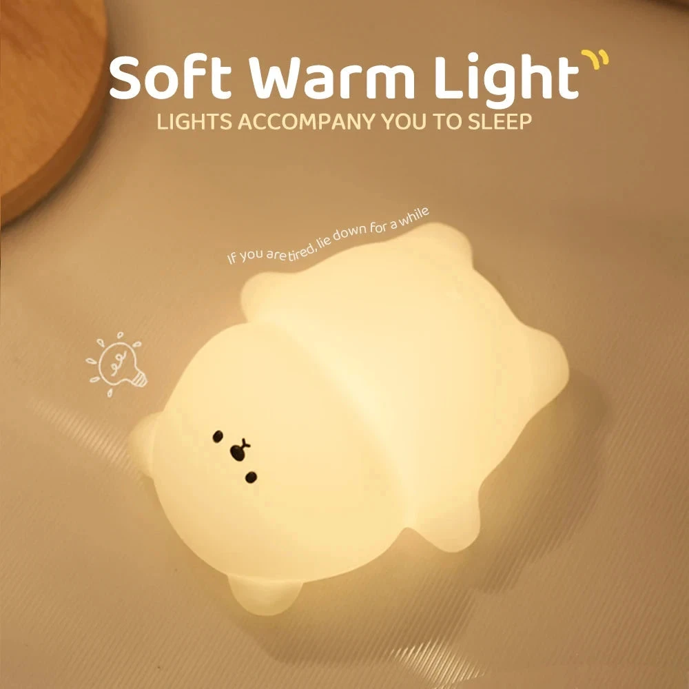 This delightful night light features a cute, detailed design of a sweet laying bear, radiating a soft, soothing light perfect for bedrooms, nurseries, or any space needing a touch of magic.