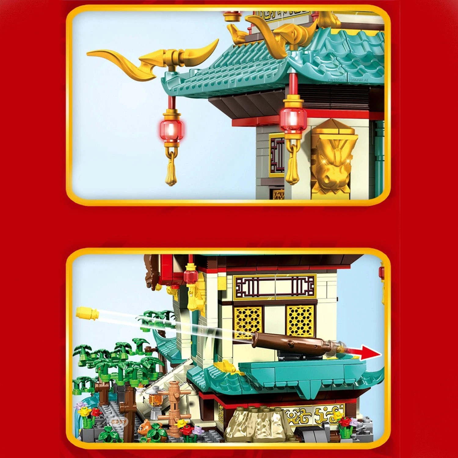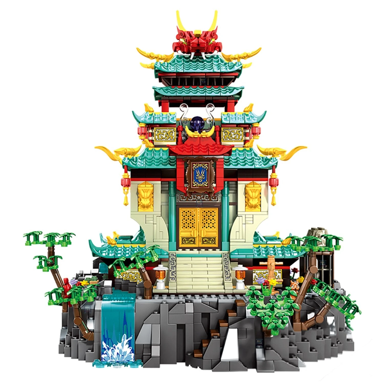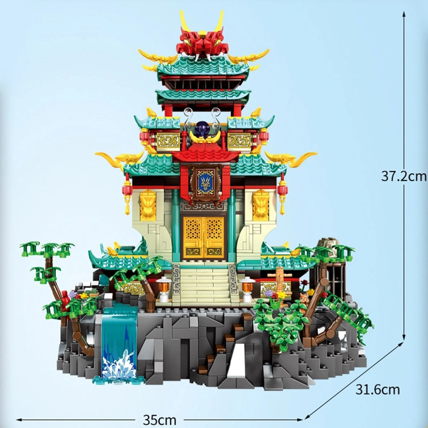 Why not take on this challenge and put together 1700+ pieces to build yourself the most amazing dragon palace ever? Featuring a palace sitting on a mountain with turquoise roof tiles, gold and red accents, dragon-themed details, and a waterfall.