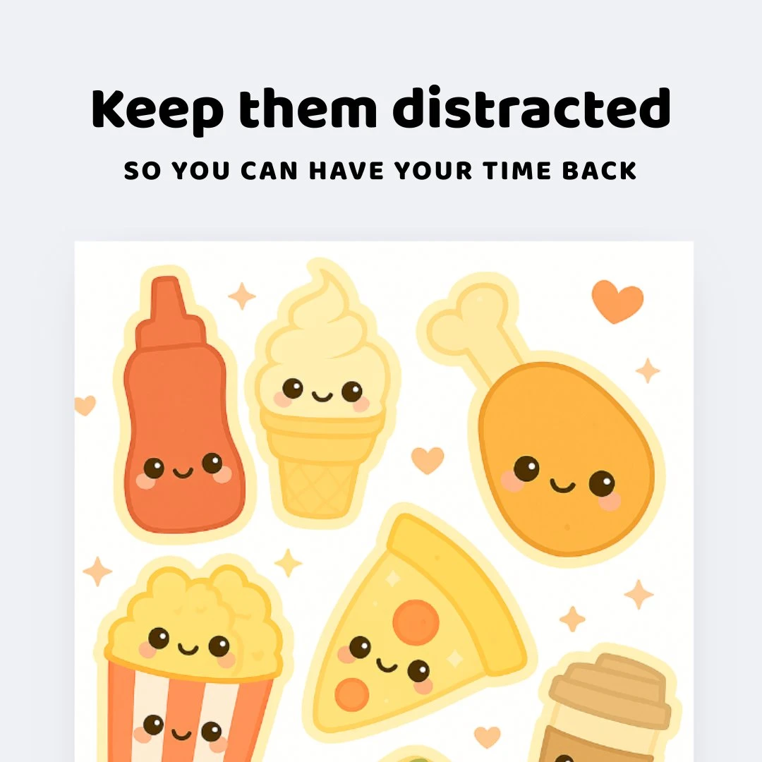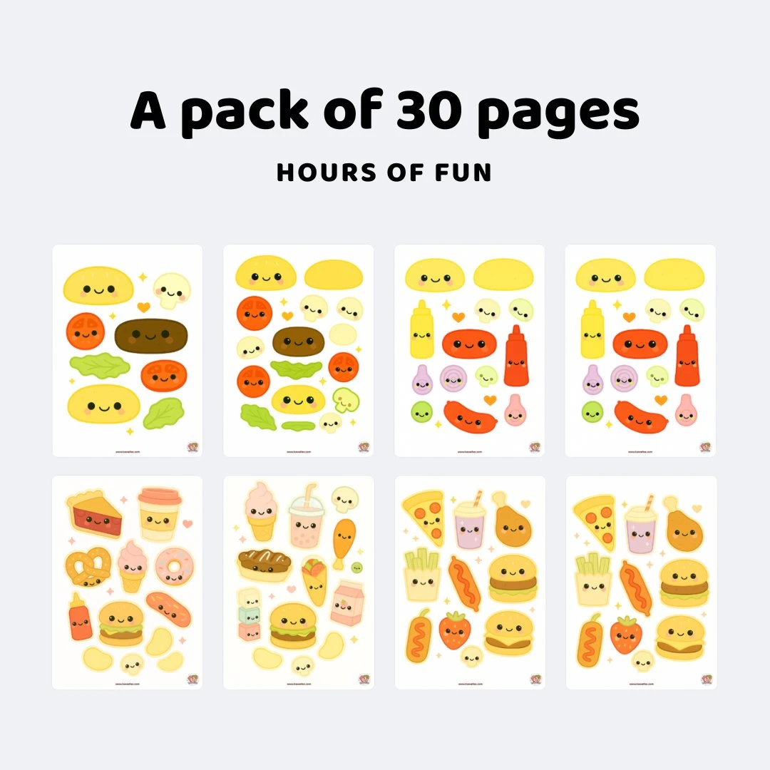 Say hello to the cutest way to keep your kids creatively busy! Our Fast Food Cut & Glue Printable Set is bursting with kawaii charm, designed to turn everyday snacks into adorable paper friends. From smiling hot dogs to happy pizza slices, cheerful burgers, popcorn, ice cream and more, this activity set is packed with fun for little hands.