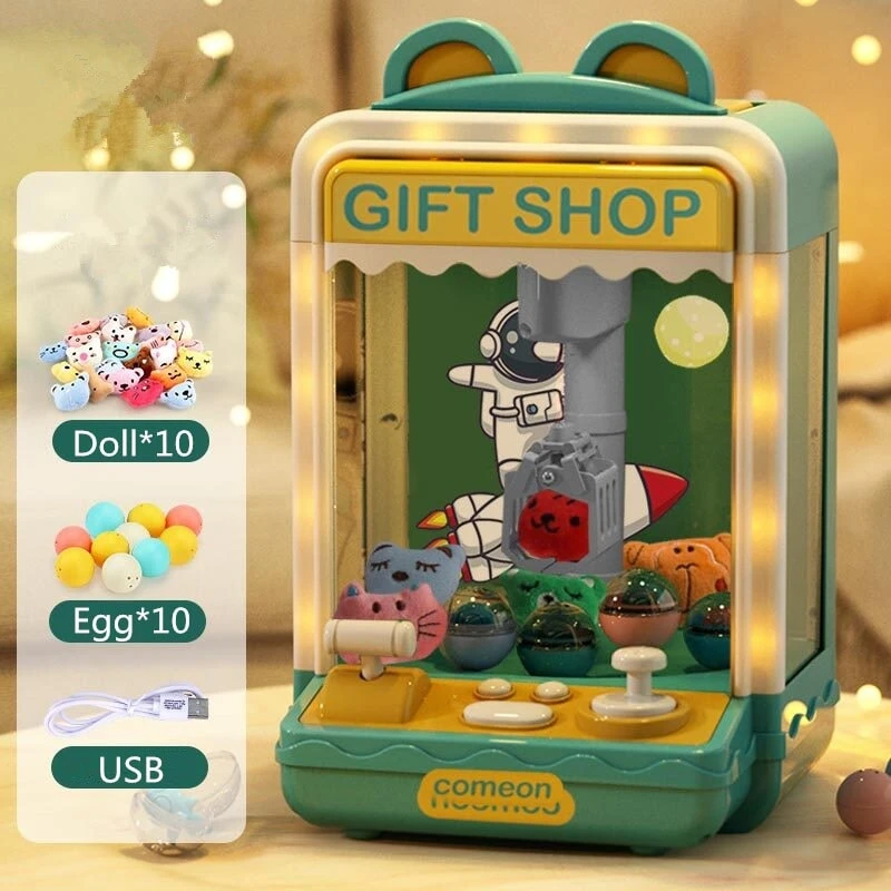 Now you can recreate the arcade experience and snag prizes right in the comfort of your own home! Crack open the fun with a 60-second dash to earn small plushies or toy-filled treats. This machine can be powered with either 4 batteries (not included) or with a USB cable (included).