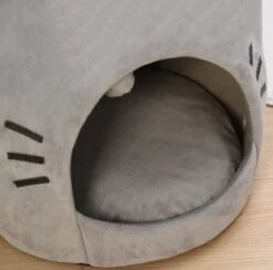 A purrfect haven for your feline friend who adores the thrill of hiding! Step into a world of whimsy and charm with our delightful gray cat-themed bed, a fusion of practicality and kawaii that brings the furry wonders to your cat’s cozy corner.