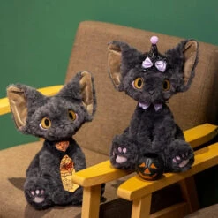 These adorable Halloween-themed cats will leave a lasting impression on any special person receiving this plushie. All it takes is just one hug and you will instantly fall in love with these fluffy witch cats featuring giant ears, fluffy fur, and big yellow eyes wearing a Halloween outfit. The fluffy material and soft PP cotton filling will help ease stress and issues so you can relax.