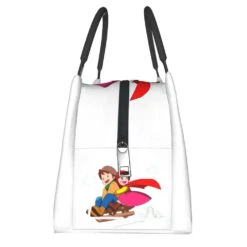 This is the perfect lunch bag for carrying your lunch or snacks and keeping them fresh while feeling stylish. This lunch bag has a spacious interior, two sturdy handles, and a zip. Features two designs of Heidi the Girl from the Alps, one in the Alps with her favorite animals and one with a solid turquoise blue canvas.