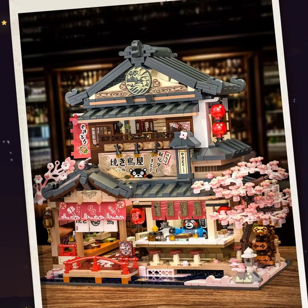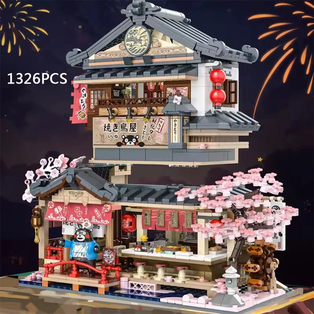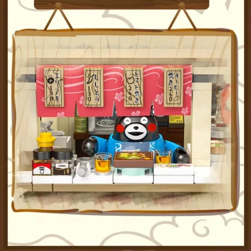 Step into a cozy world of cherry blossoms, glowing lanterns, and delicious street food with this Kumamoto Bear Micro Building Set. Inspired by the charm of traditional Japanese culture, this two-story scene features intricate signage, detailed dining spaces, and the adorable Kumamoto Bear welcoming guests with open paws.