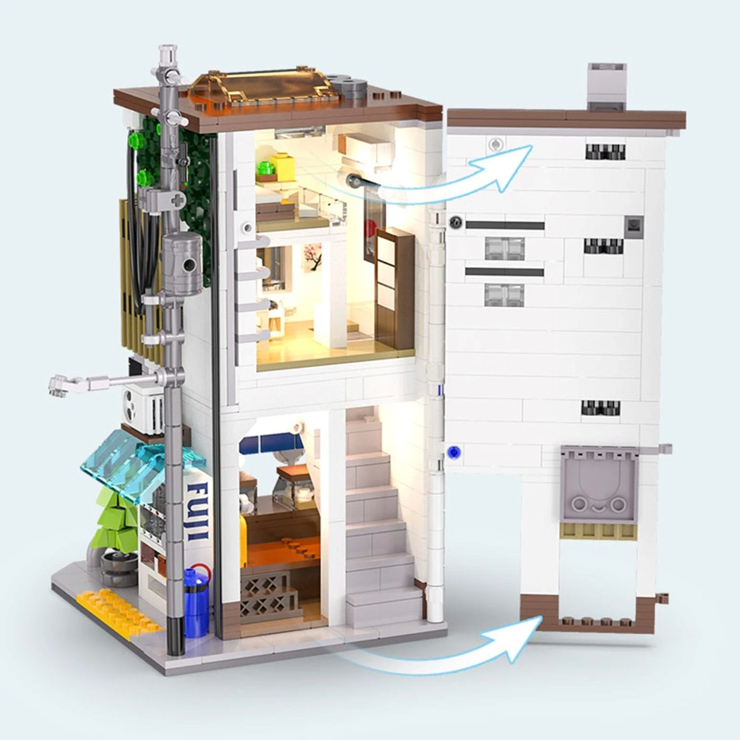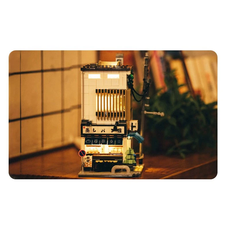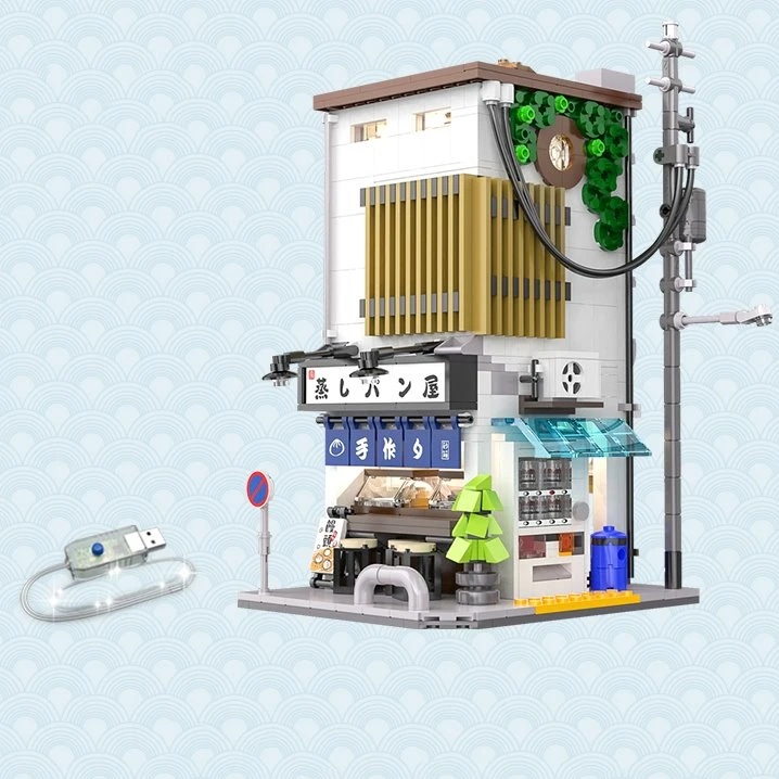 Challenge your crafting skills and recreate an authentic Japanese Store selling steamed buns that can light your room up. Turn your room into a Japanese haven with this amazing set along with our large collection of Japanese building blocks. Once you have completed this building you can easily open the back wall to access the kitchen on the ground floor and a room upstairs.