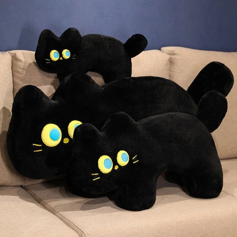 Cuddle up with JoJo the Yellow-eye Black Cat Plushie! Jazz up your sofa or bed with this lovable little cat plush, sporting a fluffy outer material covering and an adorable kitty countenance with huge yellow-blue eyes. Lay back in peace with this cushy kitty nearby, whether you’re taking a cat nap, watching a flick, or ready to sleep. The ideal prezzie for the cat-obsessed! Comes packed with 100% pp cotton to make it extra cuddly.