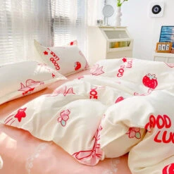 Snuggle up under this Kawaii Strawberry bedding set for your sweetest dreams ever!